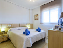 "Playa Ribera", 3-Zimmer-Wohnung 67 m2 im 3. Stock. Zweckmässig und komfortabel eingerichtet: Wohn-/Esszimmer mit Esstisch, Digital-TV, Flachbildschirm, Klimaanlage und Warmluftheizung. Ausgang zur Terrasse. 1 Zimmer mit 1 franz. Bett (135 cm, Länge 190 cm), Dusche/Bidet/WC. 1 Doppelzimmer mit 2 Betten (90 cm, Länge 190 cm). Küche (Backofen, 4 Glaskeramikherd Platten, Toaster, Mikrowelle, Tiefkühler, elektrische Kaffeemaschine). Bad/Bidet/WC. Terrasse. Terrassenmöbel. Sicht auf das Meer. Zur Verfügung: Waschmaschine, Bügeleisen, Kinderhochstuhl, Babybett, Haartrockner. Internet (Wireless LAN, gratis). Parkplatz (überdacht). Geeignet für Familien. VT-41319-CS Objekt verfügt über einen Aufzug. Auf dem Spielplatz können sich die Kinder austoben. Ein überdachter Parkplatz ist verfügbar. Das Haus ist auch mit einem Kinderbecken ausgestattet.- Aktivitäten in der Nähe