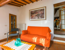 Das Podere Berrettino ist in zwei Wohneinheiten unterteilt, von denen eine von den Eigentümern bewohnt wird. Die Einheit, die wir vorschlagen, besteht aus zwei Wohnungen, eine für sechs Personen und eine für vier Personen, die nur von außen miteinander kommunizieren, aber beide über eine eigene ausgestattete Küche verfügen. Landsitz "Podere Berrettino", 450 m.ü.M.. 2 Wohnungen im Ferienhaus. Oberhalb von Reggello, 2 km vom Zentrum von Reggello, 30 km vom Zentrum von Firenze, 35 km vom Zentrum von Arezzo, sonnige, erhöhte Lage, im Grünen. Zur Mitbenutzung: Grundstück 1 ha, Naturgarten. Zur Alleinbenutzung: Schwimmbad (10 x 5 m, 150 cm tief, saisonale Verfügbarkeit: 29.Apr. - 30.Sep.). Aussendusche, Pergola, Gartenmöbel, Grill, Kinderspielplatz. In der Anlage: Wireless LAN, Waschmaschine, Heizung vor Ort zu zahlen (01.11. - 15.04.), Heizung nur verfügbar von 01.11. bis 15.04.. Parkplatz beim Haus. Einkaufsgeschäft, Supermarkt, Bushaltestelle 500 m, Bahnstation "Figline Valdarno" 10 km, Badesee "Lago di Bilancino" 70 km. Tennis 1 km, Reitstall 1 km. Nahe gelegene Sehenswürdigkeiten: Castelfranco di Sopra 12 km, Vallombrosa 13 km, Greve in Chianti 30 km, Gaiole in Chianti 36 km, Panzano in Chianti 38 km. Bitte beachten: Fahrzeug empfohlen. Geeignet für Familien. Der Besitzer akzeptiert keine Jugendgruppen. Der Besitzer wohnt auf dem gleichen Grundstück. Die Wohnungen dieser Struktur können auch einzeln gemietet werden (unsere Ref. IT5262.867.1 und IT5262.867.2). Freunde von Ballsportarten wie Tennis finden hier etliche Gelegenheiten auf dem vorhandenen Tenniscourt.Interior