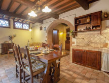 Podere Gioia besteht aus zwei unabhängigen Wohneinheiten. Unser Angebot umfasst drei Wohnungen, von denen zwei in der gleichen Einheit sind und die dritte Wohnung ist ein paar Meter entfernt. Jede Wohnung ist mit eigenem Eingang und eigener Küche ausgestattet und bewohnbar. Die Wohnungen kommunizieren nur von außen miteinander. Landsitz "Podere Gioia", umgeben von Bäumen. 10 km vom Zentrum von Castellina in Chianti, 15 km vom Zentrum von Siena, 45 km vom Zentrum von Firenze, ruhige Lage, im Grünen. Zur Alleinbenutzung: Garten, Schwimmbad (140 - 200 cm tief, saisonale Verfügbarkeit: 24.Apr. - 16.Okt.). Gartenmöbel, Grill. Im Hause: Frühstücksraum, Internetzugang (alles extra), Zentralheizung, Waschmaschine (zur Mitbenutzung, extra), Heizung vor Ort zu zahlen (01.11. - 15.04.). Wohnungsreinigung möglich (extra). Frühstück möglich. Parkplatz (überdacht) beim Haus. Einkaufsgeschäft 2 km, Bahnstation "Castellina Scalo" 2 km. Golfplatz 15 km, Tennis 3 km, Reitstall 2 km. Bitte beachten: Der Besitzer wohnt auf dem gleichen Grundstück. Wer einen rundum gelungenen Wanderurlaub machen möchte, ist hier gut aufgehoben. Das Gebiet ist flach und für Tagesausflüge geeignet. Ein Golfplatz existiert in unmittelbarer Reichweite. Es erwartet eine besondere Golfherausforderung.Interior