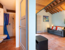 Gemütlicher, rustikaler, alleinstehender Agriturismo "Podere Vignali", auf 2 Stockwerken, aus dem 12. Jahrhundert, Baujahr 1300, umgeben von Wiesen und Feldern. 2 Wohnungen im Ferienhaus. 2 km vom Zentrum von Pari, alleinstehende, ruhige, sonnige Lage, 60 km vom Meer. Zur Mitbenutzung: grosser Garten mit Wiese. Zur Alleinbenutzung: Schwimmbad (10 x 4 m, 100 - 150 cm tief, saisonale Verfügbarkeit: 01.Jun. - 30.Sep. Öffnungszeiten Schwimmbad: 08:00-20:00) mit Innentreppe. Gartenmöbel, Grill, Poolpflege durch den Besitzer/Gärtner. Im Hause: Waschmaschine (extra). Koch möglich (extra). 1.5 km lange steile, schmale Zufahrt (Naturweg). Parkplatz auf dem Grundstück. Lebensmittelgeschäft 2 km, Supermarkt 20 km, Restaurant 2 km, Bar 2 km, Bäckerei 2 km, Sandstrand "Marina di Grosseto" 60 km, Thermalbad "Petriolo" 5.6 km. Wanderwege ab Haus 50 m. Nahe gelegene Sehenswürdigkeiten: Siena 39 km, Grosseto 46 km, Montalcino 48 km. Wandergebiete: Riserva Natuarle Farma 11 km. Bitte beachten: Fahrzeug empfohlen. Babyausstattung auf Anfrage (inkl.). Ab Hof Verkauf von bäuerlichen Produkten. Der Besitzer wohnt im selben Haus. Eigentümer hat einen Hund.Interior