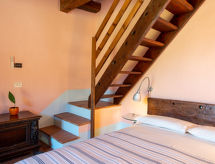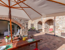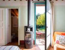 6-Zimmer-Doppelhaushälfte 150 m2, im Erdgeschoss. Geräumig, rustikal und geschmackvoll eingerichtet: Wohnzimmer mit TV. Ausgang zur Loggia. 1 Zimmer mit 1 Diwanbett, 1 Doppelbett, Dusche/Bidet/WC und Holzofen. Ausgang zur Terrasse, zur Loggia. 1 Doppelzimmer, ohne Fenster mit Dusche/Bidet/WC und Holzofen. Ausgang zum Garten. 1 Zimmer mit 1 Diwanbett, 1 Doppelbett, Dusche/Bidet/WC und Holzofen. Ausgang zur Loggia. 1 abgeschrägtes, offenes grosses Zimmer, auf 2 Ebenen mit 1 Doppeldiwanbett, 1 Doppelbett, Dusche/Bidet/WC und Holzofen. Ausgang zum Garten, zum Gartensitzplatz. Grosse Küche (Backofen, Geschirrspüler, 6 Flammen, Wasserkocher, Tiefkühler, elektrische Kaffeemaschine) mit offenem Kamin, Esstisch und sep. WC. Ausgang zur Loggia. Natursteinböden. Komfortable Einrichtung im Landhausstil. Grosse Terrasse. Terrassenmöbel, Gartengrill. Sehr schöne Panoramasicht auf die Landschaft und Pari. Zur Verfügung: Waschmaschine (extra). Fliegengitter, Kinderhochstuhl, Babybett bis 2 Jahre, Haartrockner, Holz (extra). Internet (Wireless LAN, gratis). Bitte beachten: Nichtraucher-Unterkunft. Keine interne Verbindung zwischen den separaten Wohneinheiten. Alle Räume sind nicht intern verbunden, sondern haben nur einen Zugang von außen. Bitte sehen Sie sich den Grundriss in der Fotogalerie an. Frisch geduscht und duftend kann man entspannt zum Ferienprogramm übergehen, denn eine Dusche ist vorhanden. Bitte unterlassen Sie das Rauchen im Ferienobjekt. Es ist nicht erlaubt. Für die absolute Entspannung während des Urlaubs steht Ihnen ein Koch zur Verfügung. Ein privater Pool ist verfügbar.- Ausstattung