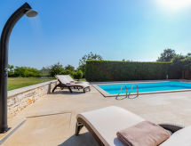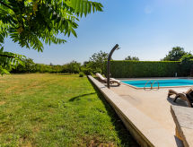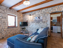 Kinderfreundliches, schönes Einfamilienhaus "Poli Murvu". 4 km vom Zentrum von Žminj, sonnige Lage, 27 km vom Meer. Zur Alleinbenutzung: Grundstück 1'500 m2 (eingezäunt), Garten mit Rasen, Schwimmbad (32 m2, 150 cm tief, saisonale Verfügbarkeit: 01.Mai. - 30.Sep.). Aussendusche, Terrasse (30 m2), Gartenmöbel, Grill. Im Hause: Internetzugang, Waschmaschine. Zur Verfügung: Fahrräder (4). Parkplatz (für 3 Autos) beim Haus auf dem Grundstück. Einkaufsgeschäft 1.5 km, Supermarkt 5 km, Restaurant 2 km, Bahnstation 1 km, Kieselstrand 27 km, Strandbad 27 km. Reitstall 4 km, Wanderwege ab Haus 1 km, Radweg 1 km. Bewegung in freier Natur und Wandern in flachen Gebieten ist hier ein bevorzugter Zeitvertreib. Möglichkeiten zum Reiten vorhanden. Hier wird für Pferd und Reiter ausgezeichnet gesorgt und einem unvergessenen Reiterurlaub steht nichts im Wege.Interior