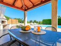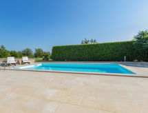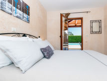 3-Zimmer-Haus 90 m2. Wohn-/Esszimmer 40 m2 mit 1 Diwanbett (140 cm, Länge 200 cm), offenem Kamin und Sat-TV (Flachbildschirm), Klimaanlage. Ausgang zum Garten. 2 Zimmer, jedes Zimmer mit 1 franz. Bett (160 cm, Länge 200 cm). Ausgang zum Garten, zur Terrasse, zum Schwimmbad. Küche (4 Kochplatten, Backofen, Geschirrspüler, Mikrowelle, Tiefkühler, elektrische Kaffeemaschine). Dusche/WC. Liegestühle. Sicht auf das Schwimmbad und den Garten. Zur Verfügung: Babybett, Haartrockner. Internet (Wireless LAN, gratis). Mit eingezäuntem Grundstück. Es hat ein Geschirrspüler. Eine Feuerstelle ist vorhanden. Ein privater Pool ist verfügbar. Um auch mal was schnell selber zuzubereiten, steht ein Mikrowellenofen parat.- Ausstattung
