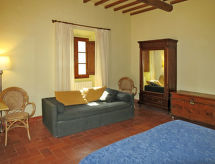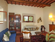 Gemütliches Einfamilienhaus "Fienile di Policleto", 350 m.ü.M.. Mietobjekt bestehend aus Haupt- und Nebengebäude, 6 km vom Zentrum von San Polo in Chianti, 6 km vom Zentrum von Grassina, 15 km vom Zentrum von Firenze, alleinstehende Lage. Zur Mitbenutzung: Grundstück 10'000 m2, Terrassengarten (nicht eingezäunt) mit Bäumen, Hof. Zur Alleinbenutzung: Schwimmbad (17 x 4 m, 120 - 220 cm tief, saisonale Verfügbarkeit: 01.Mai. - 15.Okt.) mit Salzelektrolyse-Reinigungssystem. Aussendusche, Poolpflege durch den Besitzer/Gärtner. 30 m lange holprige Zufahrt. Parkplatz auf dem Grundstück. Einkaufsgeschäft 2 km, Supermarkt 6 km. Golfplatz (19 Loch) 7.5 km, Tennis 6 km. Nahe gelegene Sehenswürdigkeiten: Greve in Chianti 15 km, San Gimignano 55 km, Siena 70 km. Bitte beachten: Fahrzeug empfohlen. Der Besitzer wohnt auf dem gleichen Grundstück. Eigentümer hat einen Hund. Tiere in der Umgebung.Interior