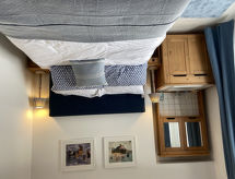 4-Zimmer-Landhaus auf 3 Stockwerken. Geräumig und hell, komfortabel und geschmackvoll eingerichtet: offenes Wohnzimmer mit TV, Flachbildschirm, DVD und Holzofen. Offene Küche (4 Kochplatten, Backofen, Mikrowelle, Tiefkühler) mit Esstisch. Sep. WC. Heizung. Obergeschoss: 1 Doppelzimmer mit 1 Doppelbett. Offenes Wohnzimmer. 1 Zimmer mit 2 Betten. Bad/Dusche/WC. Heizung. 2. Obergeschoss: 1 Doppelzimmer mit 1 Doppelbett und Dusche/WC. Terrassenmöbel. Schöne Sicht auf die Bucht. Zur Verfügung: Waschmaschine. Internet (Wireless LAN, gratis). Bitte beachten: Nichtraucher-Haus. Eine Veranda ist verfügbar. Dank der Waschmaschine die Sie vorfinden, sind weniger Kleider zum mitschleppen. Das Haus ist auch mit einem DVD Spieler ausgestattet.- Ausstattung