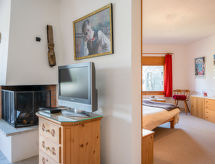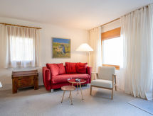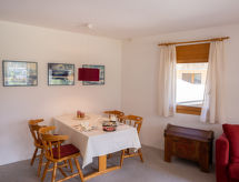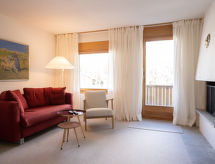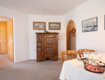 Maloja 16 km von St.Moritz: Appartementhaus "Pra d'Sura". Am Ortsrand, 400 m vom Zentrum von Maloja, sonnige Lage, 800 m vom See, an einer Hauptstrasse, Richtung Süden. Im Hause: Aufenthaltsraum, Fahrstuhl, Skiraum, Zentralheizung, Waschmaschine, Wäschetrockner (zur Mitbenutzung, extra). Gemeinschaftsgarage beim Haus. Einkaufsgeschäft 500 m, Lebensmittelgeschäft 400 m, Restaurant 50 m, Bushaltestelle 400 m. Wanderwege ab Haus 100 m, Luftseilbahn 8 km, Skilift 1 km, Skiverleih 600 m, Skibushaltestelle 400 m, Skischule, Kinderskischule 800 m, Langlaufloipe 200 m, Eisfeld 400 m. Bekannte Skigebiete sind gut erreichbar: Corvatsch - Furtschellas 9 km, Corviglia 16 km. Bekannte Seen in der Umgebung sind gut erreichbar: Silser See 500 m, St. Moritz See 16 km. Wandergebiete: Cavloc-Fextal, Lunghin See, Bergell. Bitte beachten: Fahrzeug empfohlen. Be- und Entladen am Ferienhaus möglich. Die Schlüsselübergabe findet bei der Agentur Interhome in St. Moritz statt, 16 km. Maloja ist ein idealer Ort für eine Bergwanderung. Es gibt geeignete Plätze zum Verweilen mit wunderschönen Ausblicke zu entdecken. Die Unterkunft befindet sich in einem attraktiven Segelrevier. Geniessen Sie die vergnügliche Fortbewegung unter Nutzung der Windenergie. Sobald der erste Schnee ins Land zieht, ist die Zeit reif zum Skiwandern auf den präparierten Langlauf Loipen. In der Region Maloja gibt es eine Eisbahn, in denen man die Fahrt auf Kufen geniessen kann. Schlittenabfahrten bieten vor Ort jede Menge Rodelspass für mehrere Tage.Interior