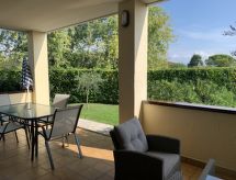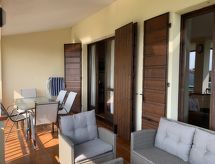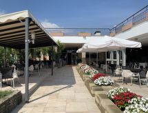 2-Zimmer-Wohnung 60 m2. Komfortabel eingerichtet: Wohn-/Schlafzimmer mit 1 Doppeldiwanbett, Esstisch, Sat-TV, Klimaanlage und Warmluftheizung. Ausgang zum Balkon, zur Terrasse. 1 Doppelzimmer mit Dusche/Bidet/WC, Klimaanlage und Warmluftheizung. Ausgang zum Balkon, zur Terrasse. Offene Küche (4 Flammen, Tiefkühler, elektrische Kaffeemaschine). Balkon oder Terrasse überdacht. Terrassenmöbel, Balkonmöbel. Zur Verfügung: Telefon, Safe. Parkplatz (1 Auto). Bitte beachten: Nichtraucher-Unterkunft. 1 kleines Haustier/Hund erlaubt. 017109-CIM-00072 Das Rauchen in der Wohnung ist verboten. Für Erkundigen rund um den Besuch in der Unterkunft bitten wir Sie, sich an die Rezeption zu wenden. Geniessen Sie Ihr Frühstück im angebundenen Restaurant. Halbpension gehört zu einem rundum sorglosen Urlaub dazu. Hoffnung ist ein gutes Frühstück? Das bieten wir Ihnen gerne an. Ein dazugehöriger idyllischer Garten lädt zum Verweilen in der Sonne ein. Damit es auch im Sommer angenehm kühl bleibt, verfügt dieses Ferienobjekt über eine Klimaanlage. Ein Babybett ist verfügbar. Ein überdachter Parkplatz ist verfügbar. Ein Pool ist vorhanden. Ein Kinderbecken ist verfügbar. Es hat ein Tischtennistisch.- Ausstattung