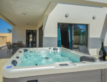 4-Zimmer-Villa 184 m2 auf 2 Stockwerken, Südwestlage. Luxuriös eingerichtet: Wohn-/Esszimmer 60 m2 mit Sat-TV (Flachbildschirm), Klimaanlage. Ausgang zur Terrasse. 1 Zimmer mit 1 franz. Bett (180 cm, Länge 200 cm), Dusche/WC und Sat-TV (Flachbildschirm), Klimaanlage. Offene Küche (Backofen, Geschirrspüler, 4 Glaskeramikherd Platten, Mikrowelle, Tiefkühler, elektrische Kaffeemaschine). Sep. WC. Obergeschoss: 1 Zimmer mit 1 franz. Bett (180 cm, Länge 200 cm), Dusche/WC und Sat-TV (Flachbildschirm), Klimaanlage. Ausgang zur Terrasse. 1 Zimmer mit begehbarer Kleiderschrank mit 1 franz. Bett (180 cm, Länge 200 cm), Dusche/WC und Sat-TV (Flachbildschirm), Klimaanlage. Ausgang zur Terrasse. Warmluftheizung. Terrasse 10 m2, Terrasse 18 m2. Terrassenmöbel. Zur Verfügung: Haartrockner. Internet (Wireless LAN, gratis). Für Ihr Wohlbefinden geniessen den Whirlpool in der Urlaubszeit. Das Haus ist auch mit einem Parkplatz ausgestattet.- Ausstattung