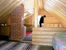 65 km nordöstlich von Kuopio, See Saarijärvi 15 m (Länge 8 km, Breite 1 km), flacher Schlammboden, einige Felsen, Anlegestelle, eigenes Boot. Blockhaus, Baujahr 2001, Wohnküche, Schlafzimmer (Schiebetür) mit Doppelbett, im Obergeschoss 2 Doppelbetten, Schlafsofa und Bett für ein Kind, Balkon. Offene Veranda. Separate Ufersauna (27 m²) mit Ankleideraum. Dusche und Fussbodenheizung in der Ufersauna. Der Warmwasserbehälter ist klein, aber Sie können das Wasser auch im Boiler erwärmen, der am Saunaofen angebracht ist. Grundstück ist eben, Ufer für Kinder geeignet. Nachbarn nicht sichtbar. Gute Angelgewässer. Etwa 100 m vom Ferienhaus entfernt, befindet sich Eisenbahn, die von der Anlegestelle aus sichtbar ist. Züge fahren 2x an Wochentagen und an Wochenenden gar nicht. Der Eigentümer vermietet 2 Fahrräder (nach vorheriger Anfrage) und 1 Kanu. Auf dem Hof des Eigentümers (1 km entfent) sind Haustiere, inkl. Hunde, Katzen, Kaninchen und Schafe. Kaavi 6 km und Tahkovuori 50 km. Auf dem Hof des Hauses befindet sich eine Mauer. Die tägliche Reinigung unter der Brause braucht wenig Zeit. Die Dusche dazu steht bereit. Geeignet zum Grillen. Eine Sauna ist verfügbar.- Ausstattung