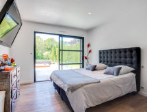 4-Zimmer-Villa 200 m2 auf 2 Stockwerken. Schön eingerichtet: grosses Wohn-/Esszimmer mit TV (Flachbildschirm). Ausgang zum Garten, zum Schwimmbad. 1 Zimmer mit 1 franz. Bett (1 x 160 cm, Länge 200 cm), Dusche und TV (Flachbildschirm). Ausgang zum Garten. Offene Küche (Backofen, Geschirrspüler, 3 Glaskeramikherd Platten, Mikrowelle, Tiefkühler, elektrische Kaffeemaschine). Sep. WC. Obergeschoss: 1 Zimmer mit 1 franz. Bett (1 x 140 cm, Länge 190 cm), Dusche. 1 Zimmer mit 1 franz. Bett (1 x 200 cm, Länge 200 cm), Dusche und Sprudelbad. Ausgang zum Balkon. Galerie mit 1 Bett (80 cm, Länge 190 cm). Sep. WC. G-Heizung. Terrassenmöbel, Balkonmöbel, Elektrogrill, Liegestühle (2). Sicht auf das Schwimmbad und den Garten. Zur Verfügung: Waschmaschine, Wäschetrockner, Bügeleisen, Kinderhochstuhl, Babybett bis 5 Jahre, Haartrockner. Internet (Wireless LAN, gratis). Parkplatz beim Haus. Mit eingezäuntem Grundstück. Die Entspannung und das Lebensgefühl im Garten sind im Urlaub unverzichtbar. Mit eigenem Whirlpool.,Nutzen Sie den Whirlpool. Geeignet zum Grillen. Es hat ein Babybett. Es hat ein privater Pool. Es gibt ein beheizter Pool. Das Haus ist auch mit einem Wäschetrockner ausgestattet.- Ausstattung