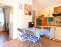 "Margareta (ICS102)", 2-Zimmer-Wohnung 50 m2 im 1. Stock. Wohnzimmer mit 2 Diwanbetten, Sat-TV und Klimaanlage. Ausgang zum Balkon. 1 abgeschrägtes Zimmer mit 1 franz. Bett (180 cm, Länge 200 cm). Ausgang zum Balkon. Küche (4 Kochplatten, Backofen, Geschirrspüler, Toaster, Wasserkocher, elektrische Kaffeemaschine) mit Esstisch. Ausgang zum Balkon. Dusche/WC. Balkon. Balkonmöbel, Gartengrill (mobil), Liegestühle. Sicht auf das Meer. Zur Verfügung: Waschmaschine, Bügeleisen. Internet (Wireless LAN, gratis). Bitte beachten: Nichtraucher-Haus. Maximal 1 Haustier/Hund erlaubt. Frisch geduscht und duftend kann man entspannt zum Ferienprogramm übergehen, denn eine Dusche ist vorhanden. Das Rauchen in der Wohnung ist verboten. Sollte das Wetter einmal nicht mitspielen, ist auch ein Fernseher vorhanden. Es hat ein Ofen.- Ausstattung