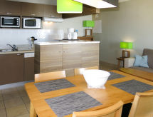 "Reine Marine (ALO301)-T2 Face Mer", 2-Zimmer-Wohnung 40 m2. Komfortabel und schön eingerichtet: Wohn-/Schlafzimmer mit 1 Doppeldiwanbett (140 cm, Länge 200 cm), Esstisch und Sat-TV. 1 Zimmer mit 2 Betten (90 cm, Länge 200 cm). Kochnische (Backofen, Geschirrspüler, 4 Glaskeramikherd Platten, Toaster, Wasserkocher, Mikrowelle, elektrische Kaffeemaschine). Bad/Dusche, sep. WC. E-Heizung. Sehr schöne Panoramasicht auf das Meer. Zur Verfügung: Kinderhochstuhl, Babybett. Internet (Wireless LAN, gratis). Bitte beachten: Maximal 1 Haustier/Hund erlaubt. Rauchmelder. Inserat eines gewerblichen Vermieters nach Artikel 155, IV, CGI Bequem mit dem Lift bis vor die Haustür. Ein Geschirrspüler ist verfügbar. Es gibt ein Innenpool. Ein beheizter Pool ist vorhanden. Es hat ein Internetanschluss. Das Haus ist auch mit einem Wäschetrockner ausgestattet. Um auch mal was schnell selber zuzubereiten, steht ein Mikrowellenofen parat.- Charakteristik des Mietobjekts
