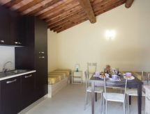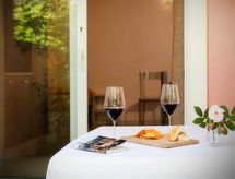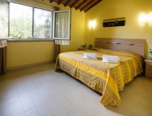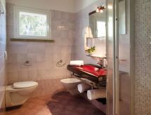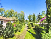 2-Zimmer-Wohnung 60 m2 im 1. Stock. Komfortabel eingerichtet: Wohn-/Esszimmer mit 2 Diwanbetten und TV. Ausgang zum Garten. 1 Doppelzimmer. Kochnische (4 Kochplatten, Backofen). Dusche/Bidet/WC. E-Heizung, Klimaanlage (extra). Terrasse. Terrassenmöbel. Zur Verfügung: Haartrockner. Parkplatz Nr. 1. Bitte beachten: TV nur IT. Eigener Eingang. Residenz. An der Rezeption erhalten Sie den Schlüssel Ihrer Ferienunterkunft sowie weitere hilfreiche Informationen. Ein Restaurant ist eingegliedert im Ferienbetrieb. Unser Garten lädt zum Verweilen ein. Es hat ein Kinderbecken. Ein Wäschetrockner ist verfügbar. Ein Tischtennistisch ist vorhanden.- Charakteristik des Mietobjekts