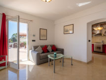 "Relax", 2-Zimmer-Wohnung 70 m2, im Erdgeschoss. Wohn-/Schlafzimmer mit 1 Doppeldiwanbett (140 cm), TV. Ausgang zur Terrasse. 1 offenes Zimmer mit 1 franz. Wandklappbett (160 cm), Schwedenofen. Küche (6 Kochplatten, Backofen, Geschirrspüler, Mikrowelle, Tiefkühler, elektrische Kaffeemaschine) mit Esstisch. Ausgang zur Terrasse. Dusche/Bidet/WC. G-Heizung. 2 grosse Terrassen, Laube. Terrassenmöbel, Gartengrill. Sehr schöne Sicht auf das Meer. Zur Verfügung: Waschmaschine, Fliegengitter, Kinderhochstuhl, Babybett. Internet (Wireless LAN, gratis). 1 Haustier/Hund erlaubt. CITRA: 008055-LT-1122 Auch ihr Hund ist hier ein gern gesehen Feriengast, schließlich gehört er zur Familie. Das Grundstück ist komplett eingezäunt. Mit Aussicht aufs Meer. Eine Terrasse ist verfügbar. Geeignet für ein Barbecue. Es gibt ein Babybett.- Ausstattung