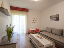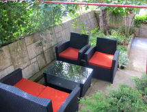 "Renata (RCA358)", 5-Zimmer-Wohnung 100 m2, im erhöhten Erdgeschoss. Wohnzimmer mit Sat-TV. Ausgang zum Balkon. Eingang mit Klimaanlage. 3 Zimmer, jedes Zimmer mit 2 Betten. Ausgang zum Balkon. 1 Zimmer mit 2 Betten. Esszimmer. Offene Küche (2 Kochplatten, Backofen, 2 Flammen, Toaster, Wasserkocher, Mikrowelle, Tiefkühler, elektrische Kaffeemaschine). Dusche/WC, Dusche/Bidet/WC. Klimaanlage (extra). 2 Balkone 9 m2, Terrasse 15 m2. Terrassenmöbel, Balkonmöbel. Zur Verfügung: Waschmaschine, Bügeleisen. Internet (Wireless LAN, gratis). Bitte beachten: Nichtraucher-Haus. Eine Dusche ist präsent und die tägliche Reinigung unter der Brause braucht nicht viel Zeit, so bleibt mehr für den Urlaub. Mit eingezäuntem Grundstück. Treten Sie ein und spüren die erfrischende Brise der Klimaanlage. Geeignet zum Grillen. Eine Waschmaschine ist zum gebrauch vorhanden.- Ausstattung