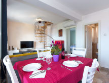 "Renato (NOV115)", 3-Zimmer-Wohnung 67 m2 auf 2 Stockwerken im 2. Stock. Wohn-/Esszimmer mit 1 Diwanbett (180 cm, Länge 200 cm), Sat-TV (Flachbildschirm), Klimaanlage. Ausgang zum Balkon. 1 Zimmer mit 1 Doppelbett (2 x 90 cm, Länge 200 cm). Offene Küche (Backofen, Geschirrspüler, 4 Glaskeramikherd Platten, Toaster, Wasserkocher, Mikrowelle, Tiefkühler, elektrische Kaffeemaschine). Dusche/WC. Dachgeschoss: (Wendeltreppe) 1 abgeschrägtes, offenes Zimmer mit Dachfenster mit 1 franz. Bett (180 cm, Länge 200 cm), Sat-TV (Flachbildschirm), Klimaanlage. Warmluftheizung. Balkon. Balkonmöbel. Zur Verfügung: Waschmaschine, Bügeleisen. Internet (Wireless LAN, gratis). Parkplatz (2 Autos). Bitte beachten: Nichtraucher-Unterkunft. Maximal 1 Haustier/Hund erlaubt. Die drückende Hitze kann Körper und Gemüt stark belasten. Deshalb sind die Räumlichkeiten mit Klimaanlagen ausgestattet. Sollte das Wetter einmal nicht mitspielen, ist auch ein Fernseher vorhanden. Was wäre eine moderne Küche ohne Mikrowelle? Diejenige welche steht selbstverständlich zur Verfügung.- Ausstattung