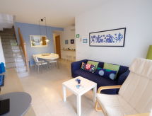 Residencial Mar: Gemütliches Appartementhaus "Residencial Mar". Ausserhalb des Ortes, 2 km vom Zentrum von Sant Carlos de la Rapita, 50 m vom Meer. Zur Mitbenutzung: Schwimmbad (saisonale Verfügbarkeit: 01.Jun. - 30.Sep.). Im Hause: Waschmaschine. Gemeinschaftsgarage Nr. 17. Einkaufsgeschäft 2 km, Lebensmittelgeschäft 500 m, Supermarkt 2 km, Einkaufszentrum 2 km, Restaurant, Biergarten 500 m, Bushaltestelle "Hife" 300 m, Bahnstation "L'Aldea" 30 km, Sandstrand "Sant Carlos de la Rapita" 2 km, Steinstrand "Alcanar Playa" 100 m. Sporthafen 2 km, Jacht-Hafen 2 km, Golfplatz (18 Loch) 15 km, Surfschule 2 km, Segelschule 2 km, Tennis 2 km, Sportzentrum 2 km, Kinderspielplatz 2 km. Nahe gelegene Sehenswürdigkeiten: Peñiscola 30 km, Vinaroz 15 km, Poble Nou del Delta 27 km, Playa del Trabucador 35 km, Port Aventura Salou 100 km, Les Cases d'Alcanar 10 km. Wandergebiete: La Foradada Sant Carlos de la Rapita. Verbessern Sie Ihr Handicap bei einer Runde Golf. Eine fabelhafte Sportart, die sich von allen gleichermassen ausüben lässt. Unweit des Feriendomizils befindet sich ein Golfplatz.Interior