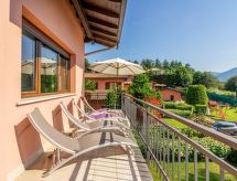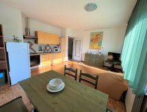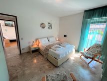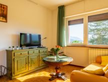 4-Zimmer-Wohnung 95 m2 im 1. Stock. Zweckmässig und gemütlich eingerichtet: grosses Wohn-/Esszimmer mit Sat-TV. Ausgang zur Terrasse. 1 Zimmer mit 2 Betten. 1 Doppelzimmer mit Dusche/WC. 1 Doppelzimmer. Ausgang zur Terrasse. Kochnische (4 Kochplatten, Wasserkocher, Mikrowelle, Tiefkühler, elektrische Kaffeemaschine). Dusche/Bidet/WC. Terrasse 40 m2 teilweise überdacht. Terrassenmöbel, Liegestühle (2). Fernsicht auf den See und die Berge. Zur Verfügung: Haartrockner. Internet (Wireless LAN, gratis). CIR:012092-CIM-00039 Auf dem Spielplatz können sich die Kinder austoben. Eine Terrasse ist vorhanden. Geeignet für ein Barbecue. Eine Waschmaschine ist zum gebrauch vorhanden. Ein Tischtennistisch ist vorhanden.- Ausstattung
