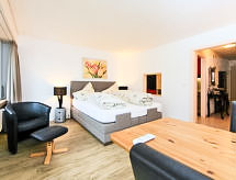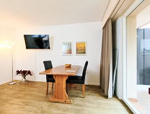 Appartementhaus direkt neben Torrentbahnen Residenz "Ringstrasse (Utoring)". Im Ort, 500 m vom Zentrum, 20 m vom Skigebiet. Im Hause: Bar, Aufenthaltsraum, Tischtennis, Spielzimmer, Fahrstuhl, Einstellraum für Fahrräder, Skiraum, Zentralheizung, Waschmaschine, Wäschetrockner (extra). Brötchenservice und Getränkeservice. Zufahrt bis zum Haus (Bergstrasse). Im Winter bitte Schneeketten mitbringen, im Winter 4x4 empfohlen. Parkplatz beim Haus, öffentliches Parkhaus in 50 m, extra. Lebensmittelgeschäft, Supermarkt, Restaurant, Freibad 500 m, Thermalbad 300 m. Tennis 500 m, Luftseilbahn, Skisportanlagen, Skipisten 20 m, Schlittelbahn, Langlaufloipe 500 m, Eisfeld 1 km. Bekannte Skigebiete sind gut erreichbar: Leukerbad Torrent. Wandergebiete: Gemmi 1 km. Shuffleboard auf Hausterrasse zur freien Benutzung. Das Haus steht am bewaldeten Südwesthang, direkt neben den Torrent-Bahnen. Nur ein kurzer Treppenweg trennt das Haus von der Talstation. Parkmöglichkeit: Winter: Parkplatz CHF 35.00/Woche, Garagenbox CHF 70.00/Woche, Sommer: Parkplatz gratis, Garagenbox CHF 35.00/Woche. Achtung: Garagenplätze beschränkt, Reservation und Bestätigung erst bei Anreise möglich! In der Buchung ist die Leukerbad Plus Card inbegriffen. Die Leukerbad Plus Card beinhaltet folgende Leistungen: Freie Benutzung des Ortsbus Ringjet, freie Benutzung des Anfänger-Skigebietes "Snowpark Sportarena (Erli), Gratis Nutzung der Sportarena (Badminton, Tennis, Squash, Billard, Tischtennis, Eislaufen, Fussball, Indoor-Fussball, Minigolf, Boulder, etc.), 15% Ermässigung beim Kauf eines Schnee- und Badepasses. 10% Ermässigung auf Abonnemente und Mehrfacheintritte in den öffentlichen Thermalbädern und den Bergbahnen. Lust am Bergwandern? Dazu sind Sie am richtigen Ort. Einfach die Wanderschuhe anziehen und loslaufen. Das Wandern erfreut sich immer größerer Beliebtheit. Wieso nicht auch mal versuchen bei einem Tagesausflug im flachen Gebiet? Bewegung an der frischen Luft, die spektakuläre Natur vor Augen helfen den Kopf frei zu kriegen und etwas für die körperliche Fitness zu tun. Die nahegelegene Eisbahn steht für Eisprinzessinnen und Hockeyspieler jeden Alters offen. Das Skigebiet mit seinen abwechslungsreichen Pisten in verschiedenen Schwierigkeitsgraden und Längen bietet Spaß und Sport für Anfänger sowie geübte Skifahrer an. Hervorragendes Wintersportgebiet für eingefleischte Snowboardern. Bietet alles was des Boarder’s Herz begehrt. In Leukerbad locken lange und kurvenreiche Schlittenabfahrten zum rasanten Wintervergnügen auf zwei Kufen an. Bespielbare Tennisplätze sind disponibel für sportliche Ferienwochen.Interior