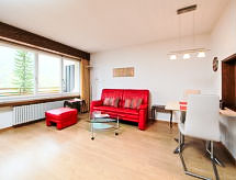 1-Zimmer-Wohnung 43 m2 im 2. Stock. Wohn-/Esszimmer mit 2 Wandschrankbetten und Kabel-TV (Flachbildschirm). Küche (3 Kochplatten, Backofen). Bad/WC. Balkon. Terrassenmöbel. Sicht auf die Berge und das Tal. Zur Verfügung: Internet (Wireless LAN, gratis). Bitte beachten: Nichtraucher-Unterkunft. Residenz. Eine Badewanne ist vorhanden. Objekt mit Lift. Das Haus ist auch mit einem drahtlosen lokalen Netzwerk (WLAN) ausgestattet. Ein Tischtennistisch ist verfügbar.- Charakteristik des Mietobjekts