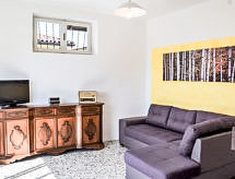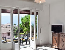 3-Zimmer-Haus 100 m2 im 1. Stock. Zweckmässig eingerichtet: Wohnzimmer mit 1 Doppeldiwanbett und Sat-TV. Ausgang zum Balkon. 2 Zimmer, jedes Zimmer mit 2 Betten. Küche (4 Kochplatten, Backofen, Geschirrspüler, Mikrowelle, Tiefkühler, elektrische Kaffeemaschine) mit Esstisch. Dusche/Bidet/WC. Ölheizung (extra). Heizung nur verfügbar von 15.10. bis 15.04. Kleiner Balkon. Balkonmöbel. Fernsicht auf den See. Zur Verfügung: Waschmaschine, Haartrockner. Internet (Wireless LAN, gratis). 1 Haustier/Hund erlaubt. CIR:012092-CNI-00018 Dank der Waschmaschine die Sie vorfinden, sind weniger Kleider zum mitschleppen.- Ausstattung