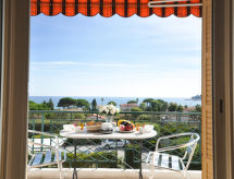 2-Zimmer-Wohnung 40 m2 im 1. Stock, Südostlage. Zweckmässig und komfortabel eingerichtet: Wohnzimmer mit 2 Betten (90 cm, Länge 190 cm), TV (Flachbildschirm), E-Heizung. Ausgang zum Balkon. 1 Zimmer mit 1 franz. Bett (140 cm, Länge 190 cm). Kochnische (Mini-Backofen, Geschirrspüler, 4 Glaskeramikherd Platten, Toaster, Wasserkocher, elektrische Kaffeemaschine, Kombinationsmikrowelle). Dusche, sep. WC. Terrassenmöbel, Liegestühle (2). Herrliche Sicht auf das Meer. Zur Verfügung: Waschmaschine, Bügeleisen, Haartrockner. Internet (Wireless LAN, extra). Parkplatz Nr. 4. Bitte beachten: 1 kleines Haustier/Hund erlaubt. Rauchmelder. Residenz. Aussicht auf das Meer und Lage sind traumhaft. Ein Balkon ist vorhanden. Es gibt ein Geschirrspüler.- Charakteristik des Mietobjekts