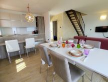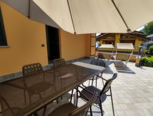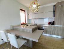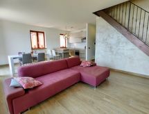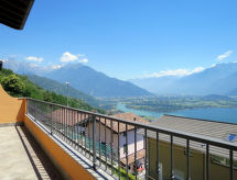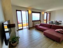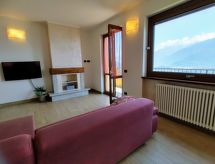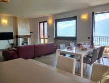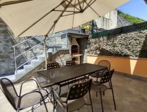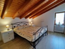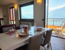 4-Zimmer-Wohnung 100 m2 auf 2 Stockwerken. Hell, schön eingerichtet: 2. Obergeschoss: (Aussentreppe) Wohnzimmer mit offenem Kamin (nur Deko), Sat-TV. Ausgang zum Balkon. Offene Küche (Backofen, Geschirrspüler, 4 Induktionskochplatten, Toaster, Wasserkocher, Tiefkühler, elektrische Kaffeemaschine) mit Esstisch. Dusche/WC. 3. Obergeschoss: 1 abgeschrägtes Zimmer mit 1 franz. Bett (160 cm). 1 abgeschrägtes Zimmer mit 1 franz. Bett (160 cm). 1 abgeschrägtes Zimmer mit 1 Bett. Bad/WC. G-Heizung. Balkon, 2 Terrassen. Terrassenmöbel, Balkonmöbel, Gartengrill, Liegestühle (4). Schöne Panoramasicht auf den See und die Berge. Zur Verfügung: Waschmaschine. Internet (Wireless LAN, gratis). Parkplatz (1 Auto). Bitte beachten: Nichtraucher-Unterkunft. Maximal 1 Haustier/Hund erlaubt. Eigener Eingang. CIR: 013226-CNI-00008 Das ist eine Ferienunterkunft in der auch Ihr Hund herzlich willkommen ist. Eine Terrasse ist vorhanden. Das Haus ist auch mit einer Feuerstelle ausgestattet. Ein Ofen ist vorhanden.- Charakteristik des Mietobjekts