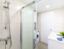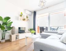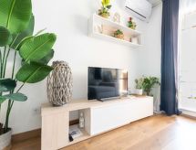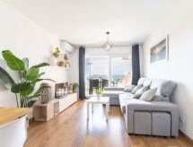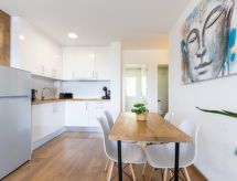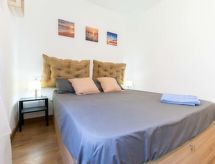3-Zimmer-Wohnung 43 m2 im 2. Stock, Südwestlage. Hell, sehr komfortabel und modern eingerichtet: Wohn-/Esszimmer mit Esstisch, TV und Digital-TV (Flachbildschirm), Klimaanlage und Warmluftheizung. Ausgang zur Terrasse, Richtung Süden und Richtung Westen. 1 Zimmer mit 1 franz. Bett (140 cm, Länge 190 cm). 1 Zimmer mit 1 franz. Bett (140 cm, Länge 190 cm). Offene Küche (Backofen, 3 Glaskeramikherd Platten, Toaster, Wasserkocher, Mikrowelle, Tiefkühler, elektrische Kaffeemaschine). Dusche/WC. Kleine Terrasse 5 m2, Südlage und Westlage. Terrassenmöbel. Sehr schöne Sicht auf das Meer und den Hafen. Zur Verfügung: Bügeleisen, Haartrockner. Internet (Wireless LAN, gratis). Bitte beachten: Nichtraucher-Unterkunft. TV nur ES. HUTG0397405 Objekt mit Lift.- Ausstattung