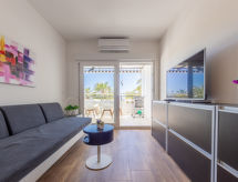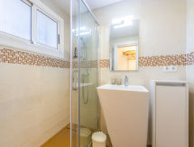 "Rodas", 3-Zimmer-Wohnung 55 m2 im 2. Stock. Vollständig renoviert im Jahre 2022, komfortabel und modern eingerichtet: Wohn-/Esszimmer mit Digital-TV und Klimaanlage. Ausgang zum Balkon. 1 Zimmer mit 2 Betten (90 cm, Länge 200 cm), Ventilator. 1 Zimmer mit 1 franz. Bett (160 cm, Länge 200 cm), Klimaanlage. Offene Küche (Backofen, 2 Glaskeramikherd Platten, Toaster, Wasserkocher, Mikrowelle, elektrische Kaffeemaschine, Kapseln für die Kaffeemaschine (Dolce Gusto) extra). Dusche/WC. Keine Heizmöglichkeit. Balkon. Balkonmöbel. Herrliche Sicht auf das Meer. Zur Verfügung: Waschmaschine, Bügeleisen, Haartrockner. Internet (Wireless LAN, gratis). Bitte beachten: geeignet für Familien. Nichtraucher-Unterkunft. TV nur ES. HUTT013395 Eine Dusche zur ist Stelle. Nur schnell shampooniert und abgeduscht und schon kann ein neuer Urlaubstag beginnen. Überdies werden sie verwöhnt mit einem freien Blick auf das Meer.- Ausstattung