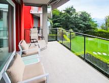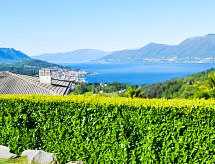 3-Zimmer-Wohnung 90 m2 auf 2 Stockwerken, im Erdgeschoss. Komfortabel und modern eingerichtet: Wohn-/Esszimmer mit 1 Doppeldiwanbett und Sat-TV. Ausgang zum Garten. Offene Küche (Backofen, Geschirrspüler, 4 Induktionskochplatten, Mikrowelle, Tiefkühler, elektrische Kaffeemaschine). Dusche/WC. Obergeschoss: 1 Doppelzimmer mit Panoramafenster. Ausgang zur Terrasse. 1 Zimmer mit 2 Betten. Bad/WC. G-Heizung (extra). Heizung nur verfügbar von 15.10. bis 15.04. Terrasse 8 m2, überdacht, kleiner Garten 20 m2. Terrassenmöbel, Liegestühle (2). Sehr schöne Sicht auf den See und die Berge. Zur Verfügung: Waschmaschine. Internet (Wireless LAN, gratis). Parkplatz. CIR: 012092-CNI-00017 Es hat ein Ofen.- Aktivitäten in der Nähe