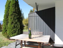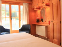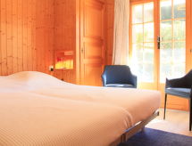 "Rose des Vents 4", 4-Zimmer-Wohnung 90 m2, im Erdgeschoss, Südlage. Geräumig, komfortabel und schön eingerichtet: Wohn-/Esszimmer mit offenem Kamin (nur Deko), Esstisch und TV (Flachbildschirm). Ausgang zum Garten, zur Terrasse, Richtung Süden. 1 Doppelzimmer mit 1 Doppelbett (1 x 180 cm), offenem Kamin (nur Deko), Bad/WC. 1 Zimmer mit 2 Betten (90 cm). 1 Zimmer mit 2 Betten (90 cm). Ausgang zur Terrasse, Richtung Osten. Offene Küche (Backofen, Geschirrspüler, 4 Glaskeramikherd Platten, Mikrowelle, Tiefkühler, elektrische Kaffeemaschine, Kapseln für die Kaffeemaschine (Nespresso) extra). Bad/WC. Grosse Terrasse, Südlage, kleine Terrasse, Ostlage. Terrassenmöbel. Sehr schöne Sicht auf die Berge. Zur Verfügung: Internet (Wireless LAN, gratis). Garage Nr. 3. Bitte beachten: Nichtraucher-Unterkunft. Eine Badewanne ist vorhanden. Es hat ein drahtloses lokales Netzwerk (WLAN). Es gibt ein Wäschetrockner.- Ausstattung