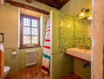 Rustikaler Landsitz "Cascina Barroero", 650 m.ü.M.. 4 Wohnungen in der Residenz. 5 km vom Zentrum von Cortemilia, 30 km vom Zentrum von Alba, 35 km vom Zentrum von Acqui Terme, 55 km vom Meer, im Grünen, im Wald. Zur Mitbenutzung: Grundstück 10'000 m2 mit Rasen und Bäumen, Wiese, Liegewiese, Schwimmbad (19 x 4 m, 120 - 180 cm tief, saisonale Verfügbarkeit: 01.Apr. - 24.Nov.). Aussendusche, Pergola, Gartenmöbel. In der Anlage: Restaurant, Waschmaschine (extra), Wäschetrockner (zur Mitbenutzung, extra). 4 km lange sehr schmale Zufahrt. Parkplatz (für 4 Autos) beim Haus auf dem Grundstück. Einkaufsgeschäft 5 km, Supermarkt 5 km, Bahnstation "Alba" 30 km. Ab Hof Verkauf von bäuerlichen Produkten. Bitte beachten: Der Besitzer wohnt auf dem gleichen Grundstück. Tiere in der Umgebung.Interior