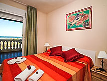 1-Zimmer-Studio 45 m2, im Obergeschoss. Zweckmässig und komfortabel eingerichtet: Wohn-/Esszimmer mit 1 franz. Bett, 1 Schlafmöglichkeit, Sat-TV und Klimaanlage. Ausgang zur Terrasse. Ausgang zur Terrasse. Kochnische (Backofen, X Glaskeramikherd Platten, Mikrowelle, elektrische Kaffeemaschine). Bad/WC. Bodenheizung. Grosse Terrasse. Terrassenmöbel. Sicht auf das Meer, das Schwimmbad und den Garten. Zur Verfügung: Waschmaschine. Internet (Wireless LAN, gratis). Geeignet für Familien. 2 Haustiere/Hunde erlaubt. HUTTE001683 Eine Badewanne ist verfügbar. Damit es auch im Sommer angenehm kühl bleibt, verfügt dieses Ferienobjekt über eine Klimaanlage. Geeignet zum Grillen. Ein Parkplatz ist vorhanden. Es gibt ein Kinderbecken.- Ausstattung