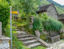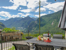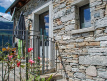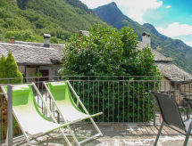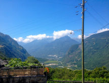 "Rustico Ca' di Garoi", 3-Zimmer-Haus 75 m2 auf 3 Stockwerken. Geräumig und hell, teilweise abgeschrägt, komfortabel und gemütlich eingerichtet: grosse, offene Küche (Backofen, Geschirrspüler, 4 Glaskeramikherd Platten, elektrische Kaffeemaschine, Kapseln für die Kaffeemaschine (NESPRESSO) extra, Racletteofen, Fondue Set (Käse)) mit Esstisch und Holzofen. Ausgang zur Terrasse. Dusche/WC. Ölheizung. Unteres Geschoss: 1 Doppelzimmer mit 1 Doppelbett (160 cm, Länge 200 cm). Obergeschoss: abgeschrägtes, offenes Wohn-/Schlafzimmer mit 1 Diwanbett (140 cm, Länge 200 cm), Sat-TV und Flachbildschirm. Kleine Terrasse teilweise überdacht. Terrassenmöbel, Gartengrill (mobil). Panoramasicht auf die Berge, das Tal, die Landschaft und die Ortschaft. Zur Verfügung: Waschmaschine, Wäschetrockner, Kinderhochstuhl, Babybett bis 2 Jahre (extra), Haartrockner. Internet (Wireless LAN). Bitte beachten: Nichtraucher-Haus. Maximal 1 Haustier/Hund erlaubt. NL-00001801 Eine Veranda ist verfügbar.- Ausstattung