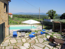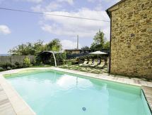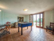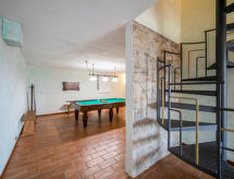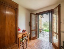 Castel San Gimignano 13 km von San Gimignano: Gemütliches, rustikales Einfamilienhaus "Rustico Cavernoso", umgeben von Bäumen, Feldern und Weinbergen. Im Ortsteil Castel San Gimignano, 13 km vom Zentrum von San Gimignano, 16 km vom Zentrum von Volterra, 40 km vom Zentrum von Siena, am Hang, 60 km vom Meer, im Grünen. Zur Alleinbenutzung: Terrassengarten, 2'000 m2 (eingezäunt) mit Pflanzen und Bäumen, Wiese, Schwimmbad (8 x 4 m, 110 - 140 cm tief, saisonale Verfügbarkeit: 10.Mai. - 05.Okt.). Aussendusche, Terrasse. Im Hause: Waschmaschine. 100 m lange Zufahrt (Naturweg). Parkplatz auf dem Grundstück. Lebensmittelgeschäft 200 m, Supermarkt 10 km, Sandstrand "Cecina Mare" 60 km.Interior