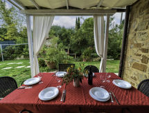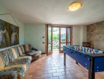 "Rustico Cavernoso", 4-Zimmer-Haus 90 m2. Schön und gemütlich eingerichtet: Wohn-/Schlafzimmer mit 1 Doppeldiwanbett, Esstisch und Sat-TV. 2 Zimmer, jedes Zimmer mit 1 franz. Bett (160 cm). 1 Zimmer mit 1 franz. Bett (160 cm). Ausgang zum Garten. Küche (Mini-Backofen, Geschirrspüler, 4 Flammen, Toaster, Tiefkühler, elektrische Kaffeemaschine) mit kleinem Esstisch. 2 Duschen/Bidet/WC. G-Heizung. Terrasse, Gartensitzplatz, Laube. Terrassenmöbel, Gartengrill, Liegestühle. Zur Verfügung: Waschmaschine, Bügeleisen, Fliegengitter, Kinderhochstuhl, Babybett. Internet (Wireless LAN, gratis). Bitte beachten: Nichtraucher-Unterkunft. Auf Anfrage und gegen Bezahlung: Aufenthaltsraum mit Billardtisch und Tischfußball im Untergeschoss. Es werden keine zusätzlichen Gebühren vor Ort fällig, ausgenommen der örtlichen Kurtaxe. Bettwäsche, Handtücher, Endreinigung und alle Energiekosten sind inkludiert. Es hat eine Veranda. Es gibt ein Babybett. Ein Parkplatz ist verfügbar. Es gibt ein Pool. Es gibt ein privater Pool.- Ausstattung
