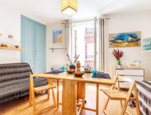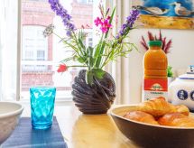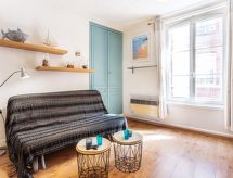 Trouvillle sur mer: Kleines Doppelhaus "Saint Germain", auf 3 Stockwerken. Sonnige Lage, im Herzen der Stadt, 200 m vom Meer, 200 m vom Strand, Richtung Süden. Einkaufsgeschäft 100 m, Supermarkt 160 m, Bäckerei 150 m, Bahnstation "Deauville Trouville" 1 km, Sandstrand "promenade des planches" 200 m, Thermalbad "Thalasso cures marines Trouville" 270 m. Golfplatz (27 Loch) 5 km, Tennis 400 m. Nahe gelegene Sehenswürdigkeiten: Casino de Trouville sur Mer 170 m, Hippodrome Deauville La Touques 3.2 km, Honfleur village normand 17 km, Falaises d'Etretat 64 km, Memorial de Caen 50 km.Interior