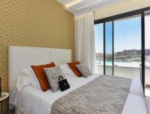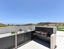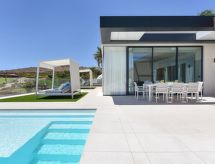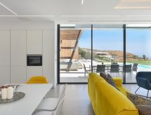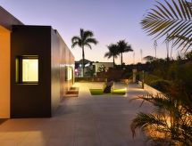 Neue, moderne, luxuriöse Villa "Salobre Sunset Villa V", Baujahr 2020, umgeben von Wiesen. Hausausstattung: Klimaanlage, Solarium, Waschmaschine (zur Alleinbenutzung), Wäschetrockner (zur Alleinbenutzung). Zufahrt & Parkmöglichkeiten: Parkplatz beim Haus. Ganzjährig Zufahrt bis zum Haus möglich. Lage: im Ortszentrum von Salobre Golf Resort, ruhige, sonnige Lage auf einem Hügel. Aussicht von der Wohnung auf die Berge und den Wald. Umgebung des Hauses: Grundstück (zur Alleinbenutzung, 1'000 m2), Swimming Pool (zur Alleinbenutzung, Länge 11 m x Breite 4 m), Grill (zur Alleinbenutzung). Schwimmbadheizung: gegen Aufpreis (€ 80.- / Nacht, muss bei der Buchung angefragt und vor Ort bezahlt werden.Interior