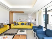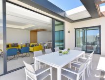 8-Zimmer- "Sunset 12PAX", Haus (freistehend), für 12 Personen, 480 m2 auf 2 Stockwerken, modern und luxuriös eingerichtet. Wohn-/Esszimmer mit Sat-TV und Kabel-TV. Rauchen nicht erlaubt. Internet (Wireless LAN [WLAN]). Schlafzimmer mit 1 Doppelbett. Schlafzimmer mit 2 Normalbetten. Schlafzimmer mit 1 Doppelbett. Schlafzimmer mit 2 Normalbetten. Schlafzimmer mit 1 Doppelbett. Schlafzimmer mit 2 Normalbetten. Offene Küche mit Mikrowelle, Backofen, Esstisch, Geschirrspüler, Kühlschrank und Tiefkühler. Bad, Bad/WC, Dusche, Dusche/WC, Sitzbad/WC und Bidet. Terrasse 300 m2, Terrassenmöbel. Weitere Ausstattung: Safe, Kinderhochstuhl, Haartrockner, Bügeleisen, Waschmaschine, Wäschetrockner. 2020/75585 Das Objekt ist ausgestattet mit Solarium. Es gibt eine Terrasse. Es gibt ein Wäschetrockner.- Charakteristik des Mietobjekts