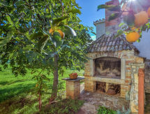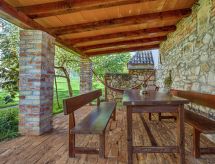 Brtonigla 6 km von Buje: Altes, schönes, rustikales Doppelhaus "Samo", Baujahr 1890, renoviert im Jahre 2005, umgeben von Bäumen, Wiesen und Feldern. 800 m vom Zentrum von Brtonigla, 8 km vom Zentrum von Novigrad, 10 km vom Zentrum von Umag, ruhige Lage, 7 km vom Meer, im Grünen. Zur Mitbenutzung: Grundstück 6'000 m2, Garten mit Wiese 600 m2, Obstgarten. Gartenmöbel, Grill. Im Hause: Internetzugang. Parkplatz beim Haus auf dem Grundstück. Einkaufsgeschäft, Restaurant 800 m, Kieselstrand 10 km, Felsstrand 7 km, Strandbad 10 km. Fahrradwege und die sogenannte Weinstrasse in der Nähe.Interior