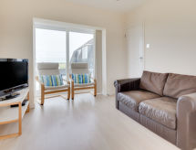 3-Zimmer-Wohnung im 1. Stock. Geräumig und hell, komfortabel und geschmackvoll eingerichtet: Wohn-/Esszimmer mit Esstisch, TV, Flachbildschirm und DVD. 1 Doppelzimmer mit 1 Doppelbett. 1 Zimmer mit 2 Betten. Küche (4 Kochplatten, Backofen, Mikrowelle, Tiefkühler). Dusche/WC. Heizung. Terrassenmöbel. Schöne Sicht auf das Meer. Zur Verfügung: Haartrockner. Internet (Wireless LAN, gratis). Bitte beachten: Nichtraucher-Haus. Maximal 1 Haustier/Hund erlaubt. Überrascht Sie mit einer herrlichen Aussicht aufs Meer. Ein WLAN (Drahtloses lokales Netzwerk) ist verfügbar. Das Haus ist auch mit einem DVD Spieler ausgestattet.- Ausstattung