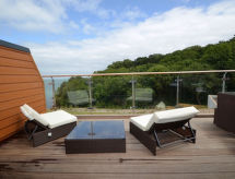 "Sandpiper", 3-Zimmer-Wohnung. Komfortabel und modern eingerichtet: Wohn-/Esszimmer mit Esstisch und TV. Ausgang zur Terrasse. 1 Doppelzimmer mit 1 Doppelbett und TV. 1 Doppelzimmer mit 2 Betten und TV. Küche (Backofen, Geschirrspüler, 4 Induktionskochplatten, Mikrowelle, Tiefkühler). Bad/Dusche/WC. Heizung. Kleine Terrasse. Terrassenmöbel. Sehr schöne Sicht auf das Meer und die Bucht. Zur Verfügung: Waschmaschine, Wäschetrockner. Internet (Wireless LAN, gratis). Bitte beachten: Nichtraucher-Haus. TV nur EN. Bietet wunderschöne Aussicht aufs Meer. Eine Terrasse ist verfügbar. Es gibt ein Parkplatz. Es gibt ein beheizter Pool. Das Haus ist auch mit einem Wäschetrockner ausgestattet.- Charakteristik des Mietobjekts