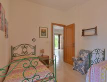 3-Zimmer- Haus (freistehend), für 4 Personen, 65 m2, gemütlich eingerichtet. Wohn-/Esszimmer mit Sat-TV, Esstisch und Essecke. Rauchen erlaubt. Internet (Wireless LAN [WLAN]). Schlafzimmer mit 1 franz. Bett. Schlafzimmer mit 2 Normalbetten. Küche mit 4 - Platten Herd, Backofen, Kühlschrank und Tiefkühler. Dusche/WC. Balkon 2 m2, Terrasse 35 m2, Terrassenmöbel. Weitere Ausstattung: Haartrockner, Bügeleisen. Das Schlafzimmer mit zwei Einzelbetten hat keine Klimaanlage. Doppelzimmer mit Deckenventilator, keine Klimaanlage. Auch wenn es in der Nacht noch so heiss bleibt, ist es schön, kann man die Klimaanlage einschalten und in einem angenehm temperierten Raumklima schlafen. Geeignet zum Grillen. Es gibt ein Babybett. Das Haus ist auch mit einem Ofen ausgestattet.- Aktivitäten in der Nähe