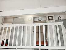 4-Zimmer-Maisonette-Wohnung 50 m2 im 4. Stock. Geräumig, komfortabel eingerichtet: Wohn-/Esszimmer mit TV (Flachbildschirm). Ausgang zur Terrasse. 1 Zimmer, Fenster zum Hof mit 1 franz. Bett (140 cm, Länge 190 cm). Offene Küche (Mini-Backofen, Geschirrspüler, 4 Glaskeramikherd Platten, Mikrowelle, Tiefkühler). Dusche, sep. WC. Obergeschoss: 1 Zimmer, Fenster zum Hof mit 1 franz. Bett (140 cm, Länge 190 cm). 1 Zimmer mit Dachfenster mit 1 franz. Bett (140 cm, Länge 190 cm). Sep. WC. Grosse Terrasse 10 m2. Terrassenmöbel. Sehr schöne Sicht auf das Meer. Zur Verfügung: Waschmaschine. Internet (Wireless LAN, extra). Parkplatz Nr. 140. Bitte beachten: geeignet für Familien. Nichtraucher-Unterkunft. Rauchmelder. Residenz. Überdies werden sie verwöhnt mit einem freien Blick auf das Meer. Ein Pool ist vorhanden. Das Haus ist auch mit einem Kinderbecken ausgestattet. Informieren Sie sich im über den vorhandenen TV Apparat. Ob lokale Neuigkeiten oder internationale Nachrichten, mit dem Fernsehen sind sie stehts gut informiert.- Charakteristik des Mietobjekts
