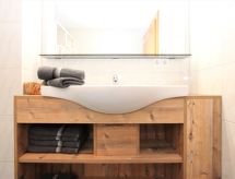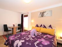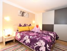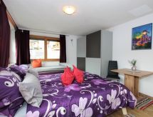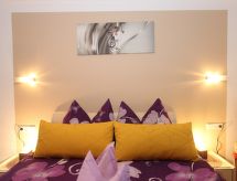 3-Zimmer-Wohnung 70 m2 im 1. Stock. Schön und gemütlich eingerichtet: 1 Zimmer mit 1 Bett und 1 Doppelbett. Ausgang zum Balkon. 1 Doppelzimmer. Ausgang zum Balkon. Wohn-/Esszimmer mit Esstisch und Sat-TV (Flachbildschirm). Offene Küche (Geschirrspüler, 4 Glaskeramikherd Platten, Mikrowelle). Dusche/WC. Grosser Balkon, Südlage und Westlage, kleiner Balkon, Südlage. Balkonmöbel. Schöne Sicht auf die Berge und die Ortschaft. Zur Verfügung: Internet (Wireless LAN). Um auch mal was schnell selber zuzubereiten, steht ein Mikrowellenofen parat.- Ausstattung