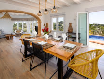 "Casa Dona", 4-Zimmer-Haus 200 m2 auf 2 Stockwerken. Geräumig und hell, schön und gemütlich eingerichtet: Wohn-/Esszimmer mit Kabel-TV, Klimaanlage und Warmluftheizung. Ausgang zum Gartensitzplatz, zum Schwimmbad. 1 Zimmer mit 1 franz. Bett (160 cm, Länge 200 cm), Klimaanlage und Warmluftheizung. 1 Zimmer mit 2 Betten (90 cm, Länge 200 cm), Klimaanlage und Warmluftheizung. Offene Küche (Backofen, Geschirrspüler, 4 Glaskeramikherd Platten, Toaster, Mikrowelle, Tiefkühler, elektrische Kaffeemaschine). Dusche/WC. Unteres Geschoss: 1 Zimmer mit begehbarer Kleiderschrank mit 1 franz. Bett (160 cm, Länge 200 cm), Dusche/WC, Klimaanlage und Warmluftheizung. Grosse Terrasse. Terrassenmöbel, Gartengrill, Liegestühle. Herrliche Sicht. Zur Verfügung: Waschmaschine, Bügeleisen, Babybett, Haartrockner. Internet (Wireless LAN, gratis). Parkplatz. Bitte beachten: TV nur FR. VT-479496-A Im dazugehörigen Garten kann man den Urlaub in vollen Zügen genießen. Treten Sie ein und spüren die erfrischende Brise der Klimaanlage. Es hat eine Veranda. Es gibt ein Pool. Das Haus ist auch mit einem privaten Pool ausgestattet. Es hat ein drahtloses lokales Netzwerk (WLAN).- Ausstattung