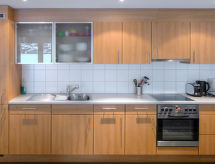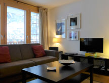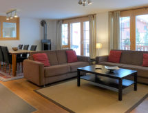 3-Zimmer-Wohnung. Hell, schön und modern eingerichtet: Wohnzimmer mit 2 Diwanbetten, Schwedenofen, TV und DVD. Ausgang zum Balkon. 1 Doppelzimmer mit 1 Doppelbett (1 x 160 cm, Länge 200 cm), Bad/WC. 1 Zimmer mit 2 Betten (90 cm, Länge 200 cm). Grosse, offene Küche (Backofen, Geschirrspüler, 4 Glaskeramikherd Platten, Toaster, Wasserkocher, Mikrowelle, Tiefkühler, elektrische Kaffeemaschine, Racletteofen, Fondue Set (Käse)). Dusche/WC. Balkon. Balkonmöbel. Schöne Sicht auf das Matterhorn. Zur Verfügung: Haartrockner. Internet (Wireless LAN, gratis). Bitte beachten: Nichtraucher-Unterkunft. Das Ferienobjekt verfügt über einen Personenaufzug. Es gibt ein DVD Spieler.- Charakteristik des Mietobjekts