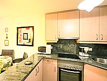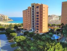 "Sidney", 2-Zimmer-Wohnung 40 m2 im 5. Stock, Ostlage. Objekt geeignet für 2 Erwachsene + 1 Kind. Geräumig und hell, geschmackvoll eingerichtet: Wohn-/Esszimmer 15 m2 mit Digital-TV und Klimaanlage. Ausgang zur Terrasse. 1 Zimmer 9 m2 mit 2 Betten (90 cm, Länge 190 cm), Ventilator. Ausgang zur Terrasse. Offene Küche (Backofen, 4 Glaskeramikherd Platten, Toaster, Wasserkocher, Mikrowelle, Tiefkühler, elektrische Kaffeemaschine) mit Bar. Bad/Bidet/WC. Klimaanlage, Boiler (50 Liter). Terrasse 10 m2. Terrassenmöbel. Eingeschränkte Sicht auf das Meer und die Ortschaft. Zur Verfügung: Waschmaschine, Bügeleisen, Kinderhochstuhl, Babybett bis 2 Jahre, Haartrockner. Internet (Wireless LAN, gratis). Parkplatz Nr. 10 (überdacht). AT-432119-A Unser Garten lädt zum Verweilen ein. Es hat ein überdachter Parkplatz. Ein beheizter Pool ist vorhanden. Sollte das Wetter einmal nicht mitspielen, ist auch ein Fernseher vorhanden. Eine Waschmaschine ist zum gebrauch vorhanden. Ein Internetanschluss ist vorhanden. Es gibt WLAN (Drahtloses lokales Netzwerk).- Ausstattung