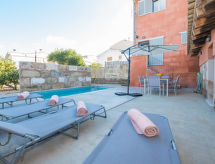 "Sineu", 4-Zimmer-Haus 120 m2 auf 2 Stockwerken. Objekt geeignet für 6 Erwachsene. Sehr komfortabel und gemütlich eingerichtet: offenes grosses Wohn-/Esszimmer mit Esstisch, Kabel-TV, Flachbildschirm, Klimaanlage und Warmluftheizung. Küche (Backofen, Geschirrspüler, 3 Glaskeramikherd Platten, Toaster, Wasserkocher, Mikrowelle, Tiefkühler) mit Klimaanlage und Warmluftheizung. Ausgang zum Gartensitzplatz, zum Schwimmbad. Bad/WC. Obergeschoss: 1 Doppelzimmer mit 1 x 2 Etagenbetten (2 x 90 cm, Länge 190 cm), Klimaanlage und Warmluftheizung. 1 grosses Doppelzimmer mit Panoramafenster mit 1 Doppelbett (150 cm, Länge 200 cm), Bad/Dusche/WC, Klimaanlage und Warmluftheizung. 1 Doppelzimmer mit Panoramafenster mit 2 Betten (90 cm, Länge 190 cm), Klimaanlage und Warmluftheizung. Bad/Dusche/WC. Grosser Gartensitzplatz. Terrassenmöbel, Gartengrill, Liegestühle (6). Sicht auf das Schwimmbad und den Garten. Zur Verfügung: Waschmaschine, Kinderhochstuhl, Babybett bis 2 Jahre, Haartrockner. Internet (Wireless LAN, gratis). Geeignet für Familien. ETV12608 Eine Veranda ist vorhanden. Geeignet für ein Barbecue. Es hat ein privater Pool. Eine Waschmaschine ist zum gebrauch vorhanden.- Charakteristik des Mietobjekts