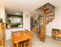Schönes, komfortables Doppelhaus. Ruhige Lage im Villenviertel, 1.1 km vom Meer, 1.1 km vom Strand. Zur Alleinbenutzung: Terrasse, Gartenmöbel, Grill, öffentliche Parkplätze auf der Strasse. Supermarkt 150 m, Restaurant, Bar 450 m, Bahnstation "Segur de Calafell" 900 m. Nahe gelegene Sehenswürdigkeiten: Barcelona 60 km, Sitges 24 km, Tarragona 39 km, Port Aventura 50 km. Der Besitzer akzeptiert keine Jugendgruppen. Die Nachbarschaft ist sehr lärmempfindlich. Ruhe und gutes Benehmen wird erwartet. Für alle Nautiker, welche zum Segeln nach Costa Dorada kommen werden begeistert sein. Eine beliebte Surfdestination mit erfrischenden Wellen. Die Wellenreiter freut es hier zu sein.Interior